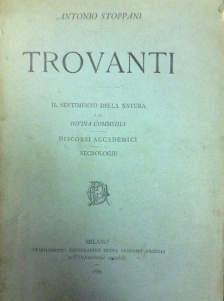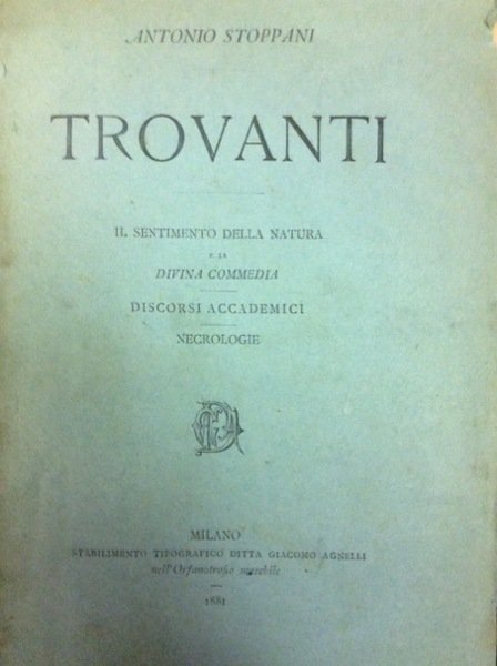 TROVANTI. - Il sentimento della natura e La Divina Commedia. Discorsi Accademici. Necrologie.