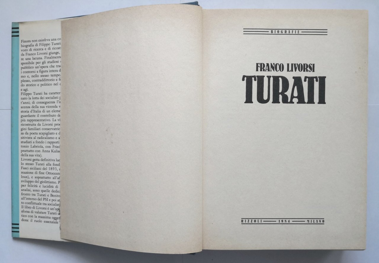 TURATI di Franco Livorsi 1984 Rizzoli Libro cinquant'anni socialismo biografia