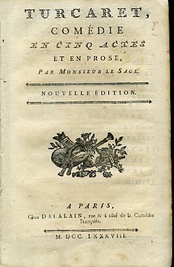 In-8°, pp. 64, brossura marmorizzata ottocentesca. Vignetta xilografica al titolo. Qualche macchia e fioritura, ma buon esemplare. La commedia, rappresentata per la prima volta nel 1709, anticipa, col personaggio del servo di Turcaret, Frontino, il Figaro di Beaumarchais. 'La prima opera teatrale tutta improntata a quel realismo che in seguito dominerà tanta parte del teatro francese. Il protagonista, inconsciamente malvagio, nell'assidua corsa al guadagno ha qualche tratto che diremmo balzacchiano; l'opera ha robustezza e concentrazione classica' (Giannina Alloisio in Dizionario Bompiani delle Opere, VII, 559-560).