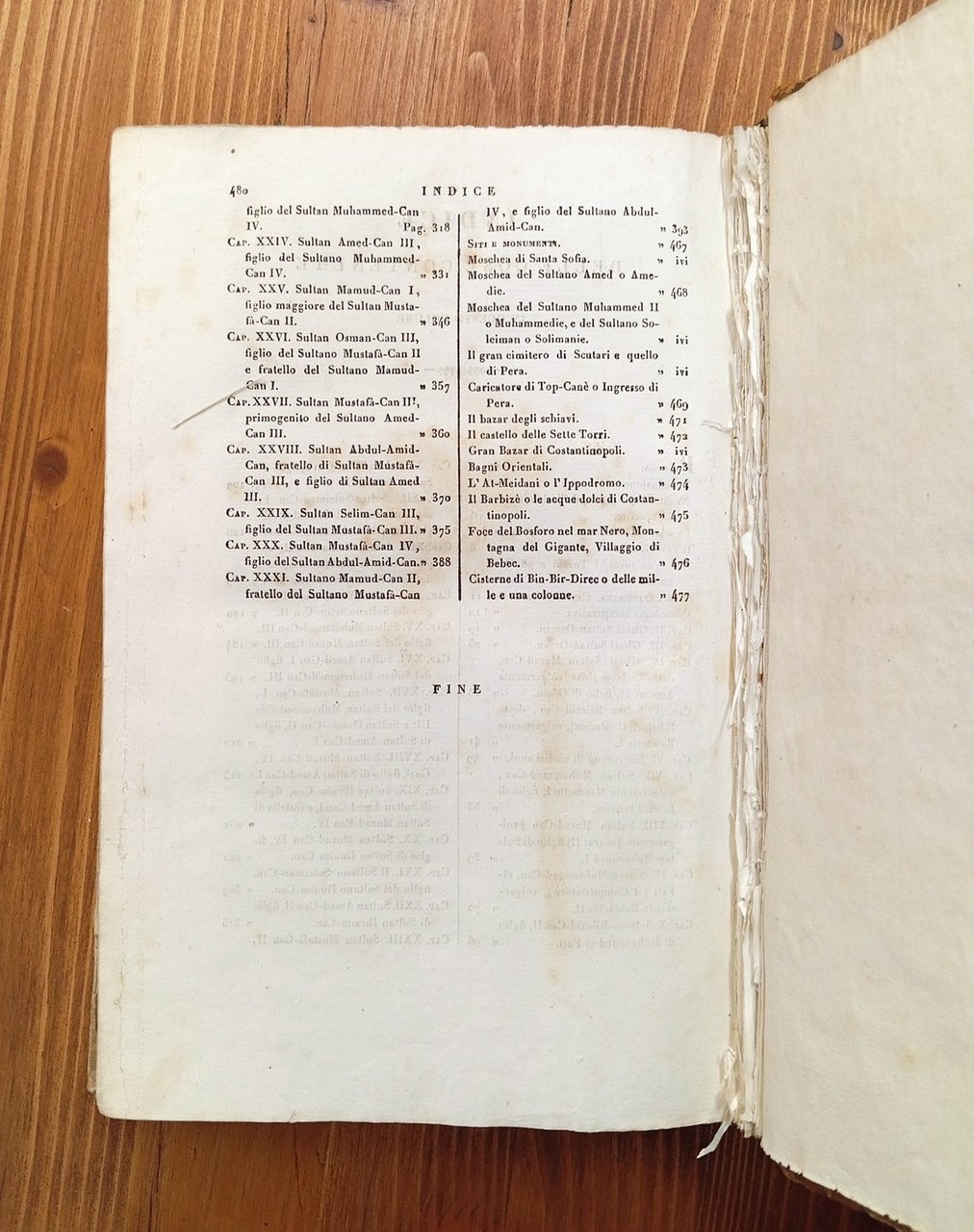 Prima edizione italiana, di due anni successiva all'originale francese pubblicata da Firmin-Didot nel 1840. Traduzione a cura di A. F. Falconetti. Collezione "L'Universo, o Storia e descrizione di tutti i popoli, ec. - Loro religioni, costumi, usanze, ec." - Volume rilegato in mezza pelle, titolo in oro sbiadito al dorso, 480 pagine con testo su due colonne. MANCANO TUTTE le 96 tavole originariamente incluse in coda al testo. Segni del tempo specie al dorso restaurato, occasionali fioriture; testo ben leggibile e opera complessivamente ben conservata, ancorché incompleta.
