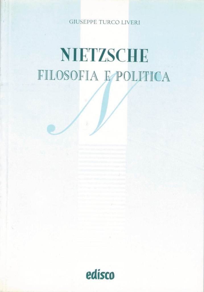 Giuseppe Turco Liveri, Nietzsche. Filosofia e politica, Edisco, Torino s.d. (ma 1998), pp. 178, cm 21, br. ed. Collana Pensatori e correnti. Collana filosofica per la scuola. Indice: Premessa – La dottrina della conoscenza – La volontà di potenza – L’eterno ritorno delle stesse cose – La gerarchia (Aristocrazia – Mediocrità – Massa) – La morale (La morale gregaria – La morale aristocratica) – La politica – La storia – Antologia – Breve bibliografia su Nietzsche. Al frontespizio, timbro di distributore editoriale. Copia saggio-campione gratuito priva dell’apposito talloncino alla copertina posteriore. Lievissima ingiallitura ai margini, per il resto perfetto.