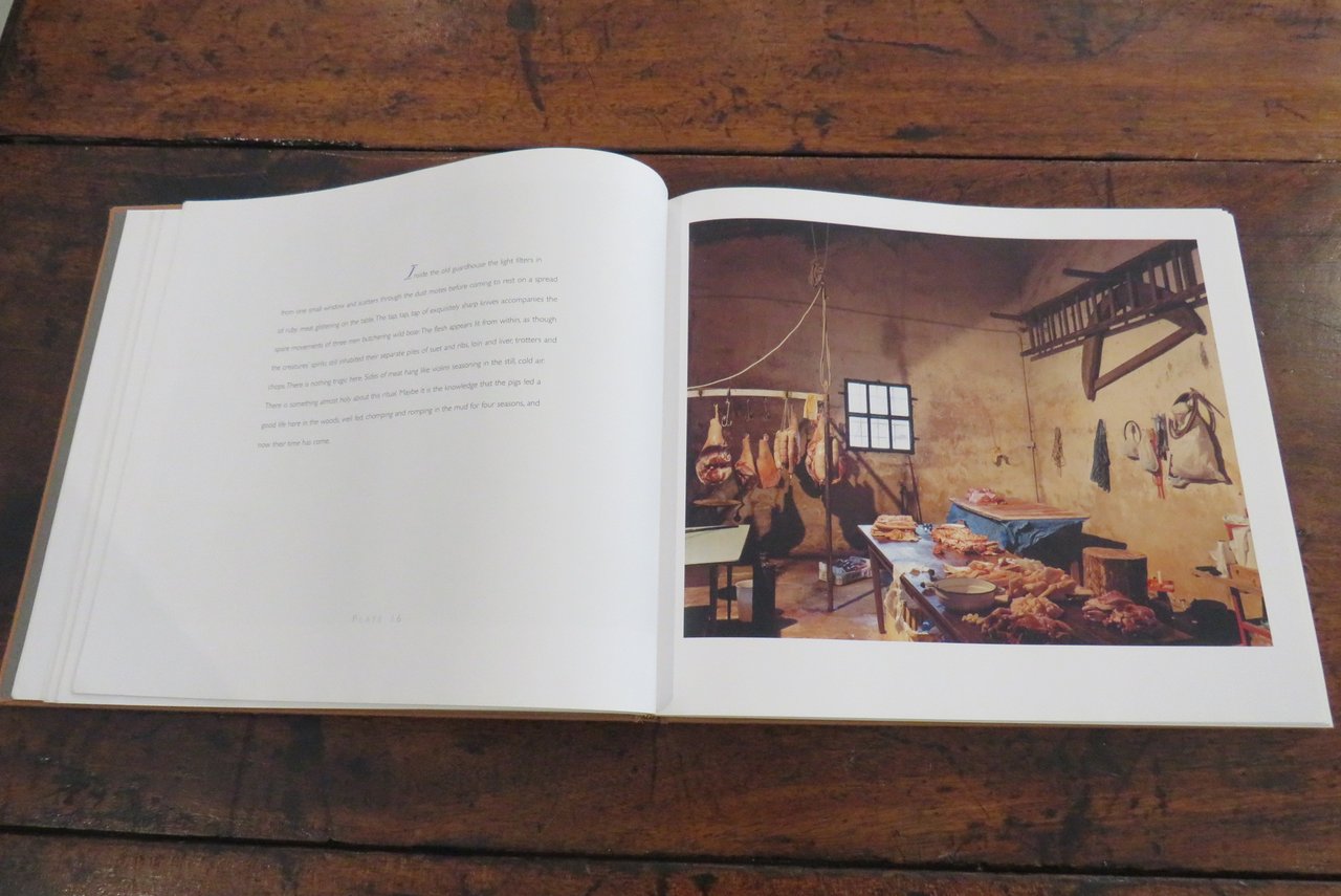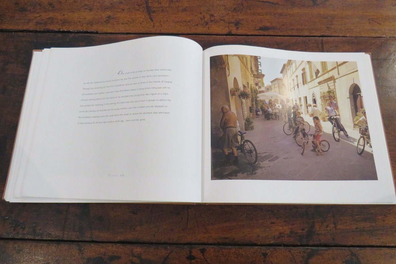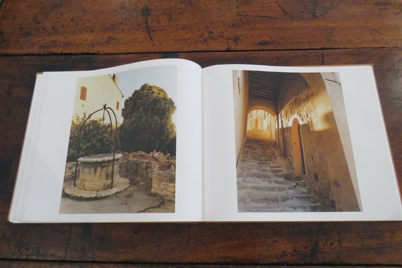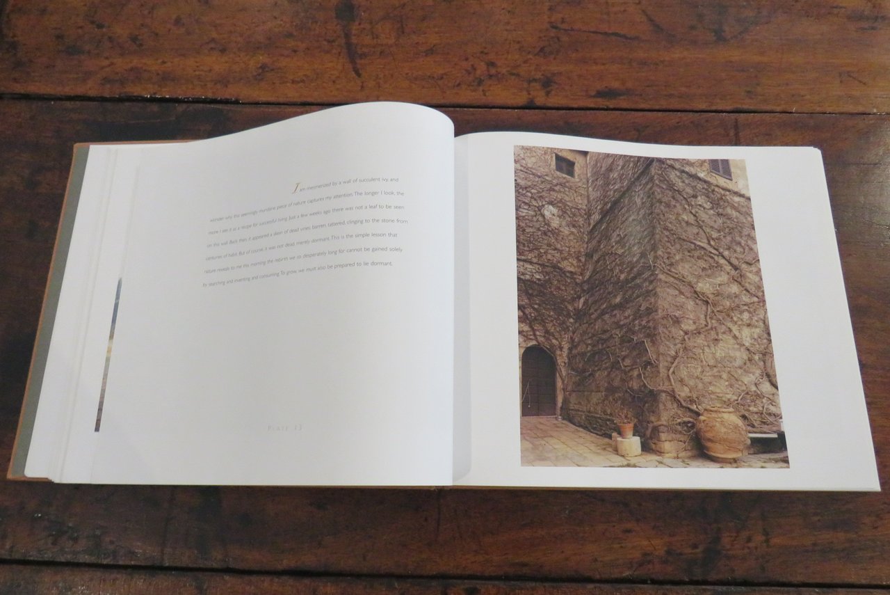 New York/London, Sterling, 2003. Formato album (mm. 320x280), con splendide, suggestive ed evocative 79 fotografie a colori a piena, a doppia e tripla pagina, che riproducono, attraverso le stagioni, nella loro magnifica luce, la campagna, i paesaggi della Toscana, la vita quotidiana delle persone e il loro profondo legame con la terra e il mondo rurale che li circonda. Tutte le fotografie sono corredate da un commento lirico e poetico, della scrittrice e drammaturga Maggie Barrett. Fotografie di Joel Meyerowitz. Legatura editoriale tutta tela arancione, con titolo e autori impressi in oro al piatto anteriore e al dorso, con foto a colori applicata. Inclusa sul retro del libro: "a fine art ready-to-frame photographic print" ("Castle Woods in Mist", 2010, di Joel Meyerowitz), conservata in busta chiusa in carta pergamena. Prima edizione. Ottimo.