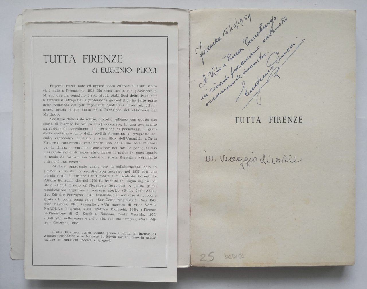 TUTTA FIRENZE di Eugenio Pucci 1955 Valmartina libro storia dedica autografa