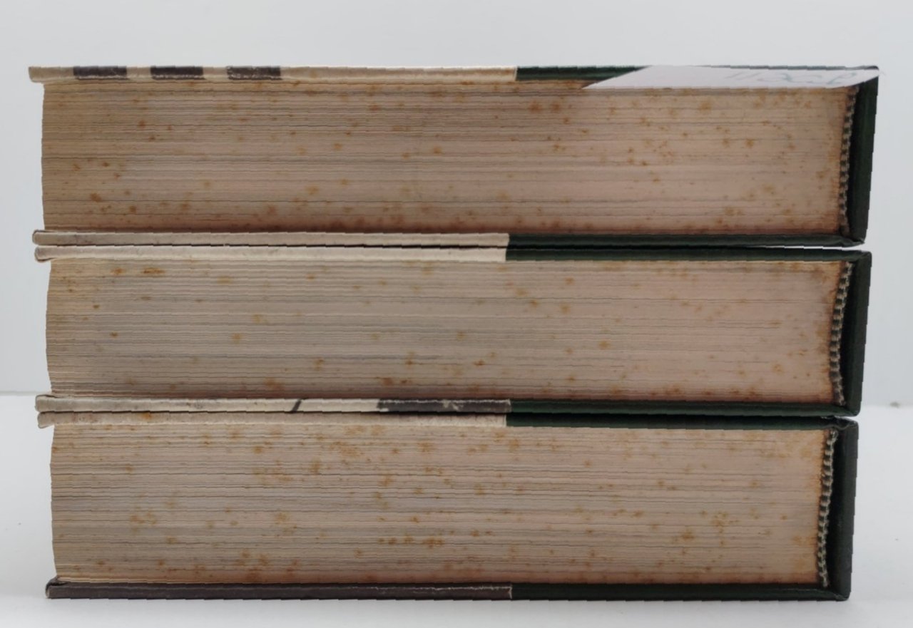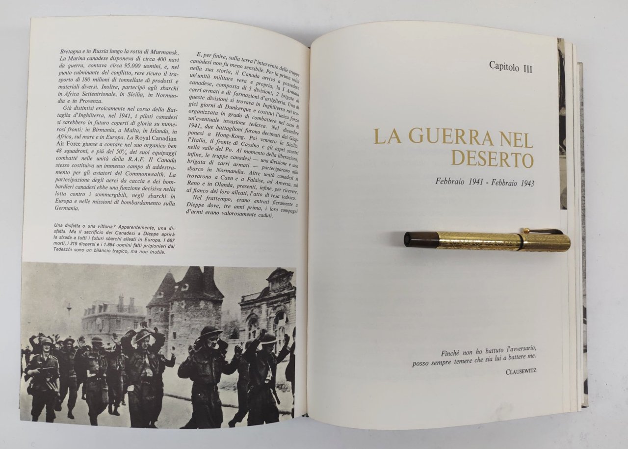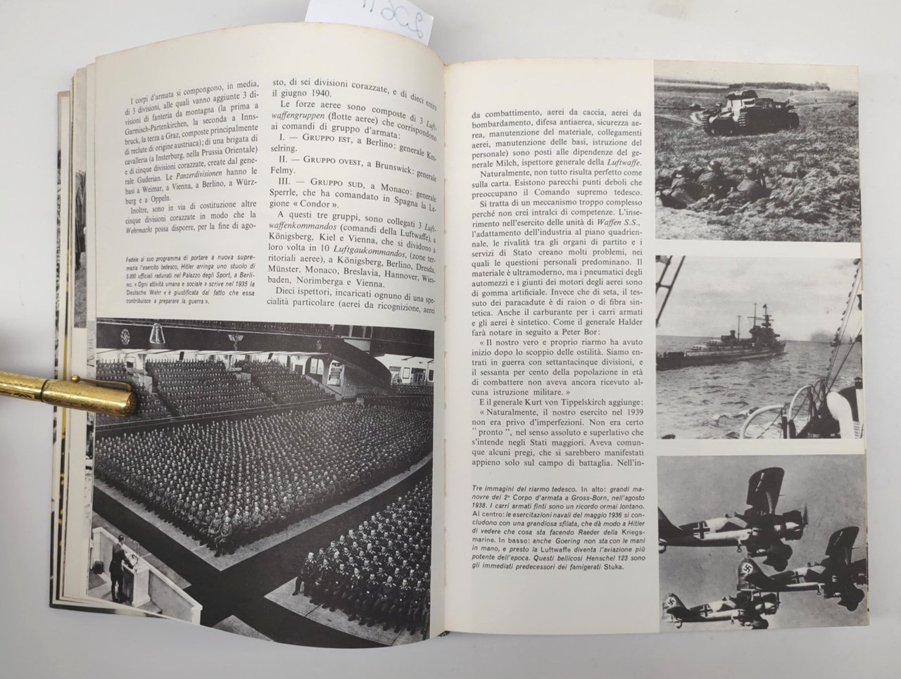 Legatura rigida editoriale in mezza pelle con piatti cartonati con immagini della seconda Guerra mondiale, titolo in oro al dorso, al terzo volume alcune piccole abrasioni tra dorso e quarta di copertina, vedere immagini, tagli leggermente ingialliti con fioriture diffuse, lieve brunitura ed alcune fioriture al margine superiore delle pagine, stesso su due colonne con numerose illustrazioni nel testo numero pagine 495 + 472 + 559 dimensioni dei tre volumi centimetri 26,5 * 20,5 *