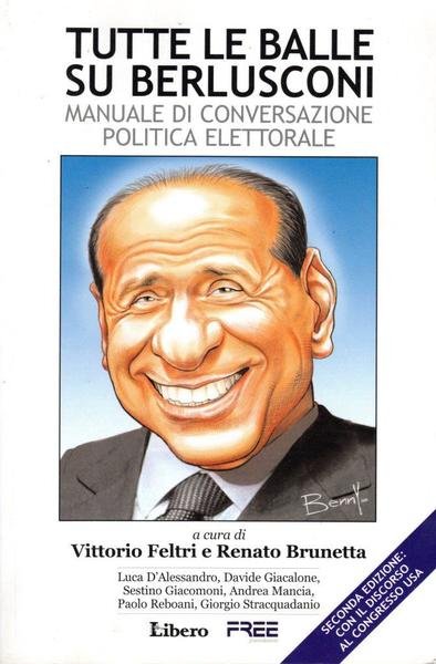 Tutte le balle su Berlusconi. Manuale di conversazione politica elettorale, seconda edizione edizione 2006, pp. 262, formato 14 x 21.<BR>Copertina morbida illustrata con titoli in nero al piatto anteriore e sul dorso.Edizione ampliata con discorso al congresso USA.<BR>Piccola macchia al piatto anteriore. Nel complesso condizioni molto buone.