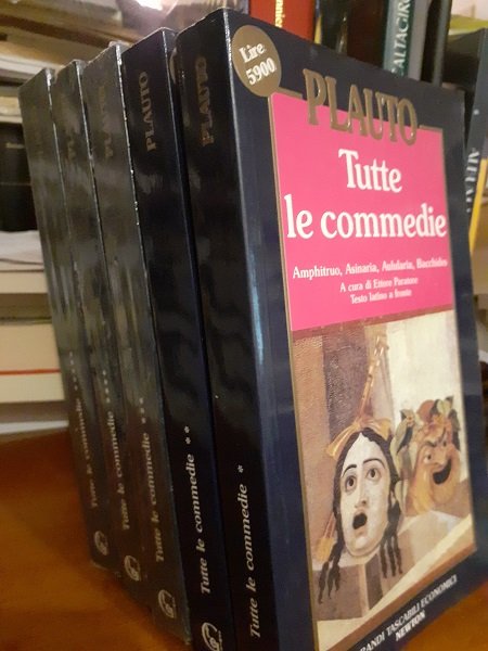 TUTTE LE COMMEDIE A CURA DI ETTORE PARATORE, TESTO LATINO A FRONTE 1 VOL. AMPHITRUO, ASINARA, AULULARIA, BACCHIDES2 VOL. CAPTIVI, CASINA, CISTELLARIA, CURCULIO, EPIDICUS 3 VOL. MENAECHMI, MERCATOR, MILES GLORIOSUS, MOSTELLARIA 4 VOL. PERSA, POENULUS, PSEUDOLUS5 VOL. RUDENS, STICHUS, TRINUMMUS, TRUCULENTUS, VIDULARIA
