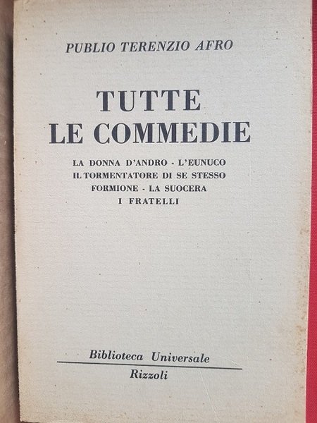 TUTTE LE COMMEDIE. LA DONNA D'ANDRO - L'EUNUCO - IL TORMENTATORE DI SE STESSO - FORMIONE - LA SUOCERA - I FRATELLI