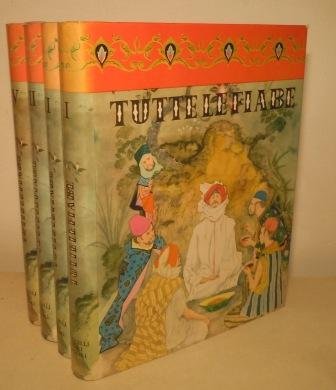 Fratelli Fabbri, 1^ ED. 1962; bella edizione di pregio, leg. ed. tela azzurra con titolo e fregio in oro al piatto e al dorso, con sovraccoperta. In 4°, pp. 272, 240, 255, 256. Tagli colorati. Belle illustrazioni a colori ad ogni pagina. Eccellenti condizioni, copertine perfette. Fiabe di Anderse, Perrault, fiabe arabe, africane, ecc