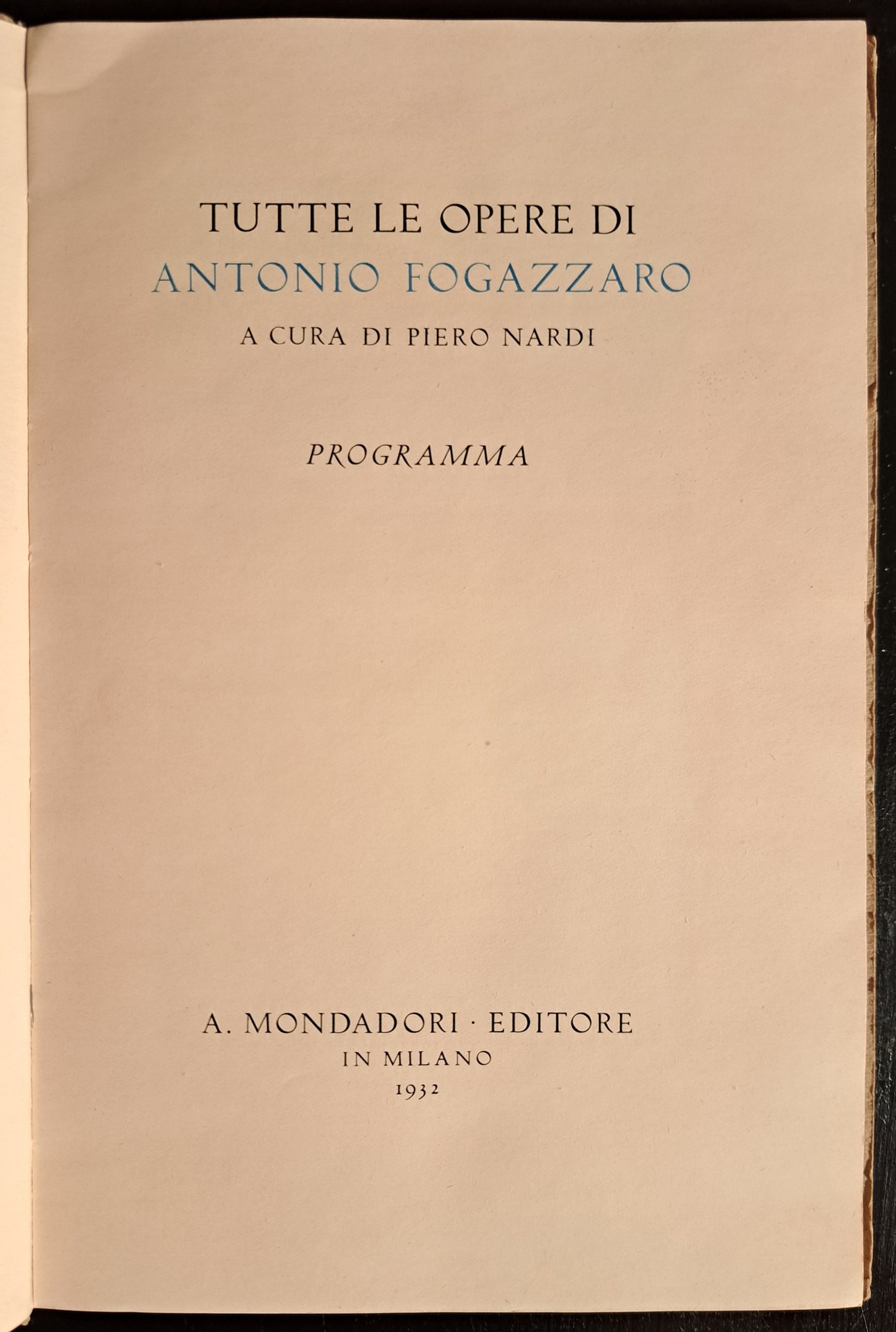 In 8°, pp. 89(5). Numerose illustrazioni in bianco e nero + 7 fac-simili ripiegati. Bibliografia e cronologia delle opere di Fogazaro. Brossura editoriale.