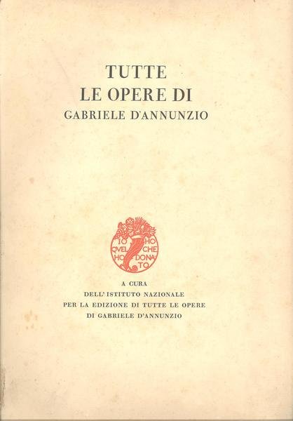 TUTTE LE OPERE DI GABRIELE D'ANNUNZIO. A CURA DELL'ISTITUTO NAZIONALE PER LA EDIZIONE DI TUTTE LE OPERE DI GABRIELE D'ANNUNZIO.