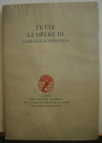 4to (cm. 32), 113(1) pp., 5 cc.nn., seguono: 32 tavv. f.t. di vario argomento stampate solo al recto, 3 pp. di Indice, 1 c.nn. di Nota sull’edizione, 1 c.nn. con il colophon con staemma dell’Officina Bodoni di Verona. Legatura editoriale in cartoncino avana ricoperto con incisa in rosso l’impresa ‘Io ho quel che ho donato’. Ottimo stato di conservazione. Nuova edizione del Gennaio del 1935 impressa in 2500 esemplari. Rispetto alla precedente edizione (1927) è tolto il disegno a stampa dell’edizione sostituito dall’elenco dei volumi già pubblicati (aggiornato con un foglietto aggiunto) e di quelli di imminente pubblicazione. Vi appaiono anche alcuni giudizi italiani e stranieri di elogio per l’edizione.