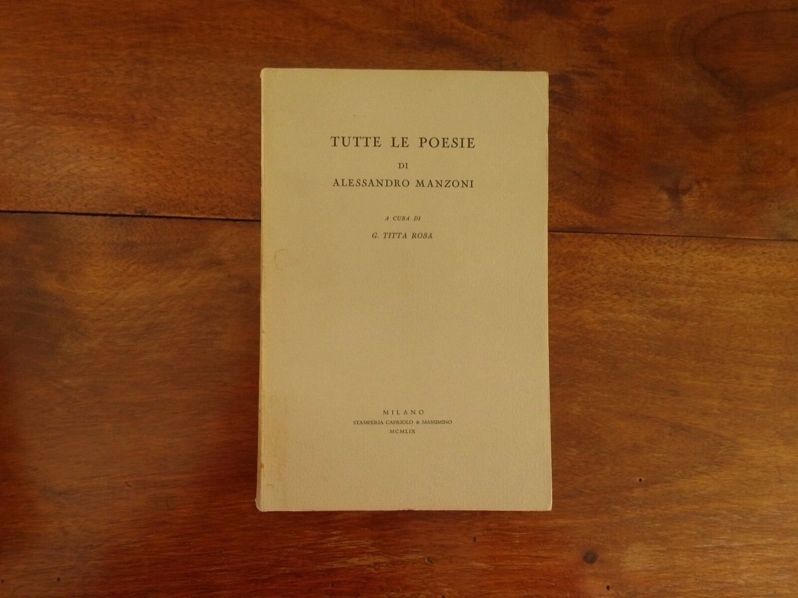 Rosa Titta - Tutte le poesie di Alessandro Manzoni Stamperia Capriolo & Massimino Prima edizione 1959 con talloncino dedica di Raffaele Mattioli Libro in ottime condizioni, minimi segni del tempo. Non esitate a contattarci per altre foto o richieste. Saremo lieti di soddisfare ogni vostra esigenza.