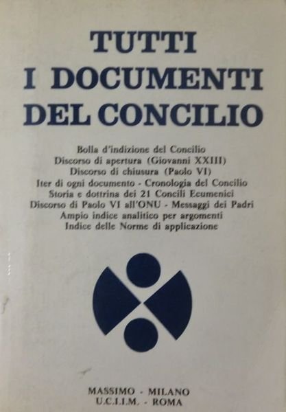 - In appendice : 1. Messaggio dei Padri del Concilio all'umanità ; 2. Discorso di Paolo 6. all' ONU; 3. I messaggi della Chiesa al mondo; 4. La cronologia del Concilio Vaticano 2.; 5. La dottrina dei 21 Concili ecumenici; 6. Indice delle Norme di applicazione dei cocumenti conciliari; 7. Indice alfabetico generale per argomenti.
