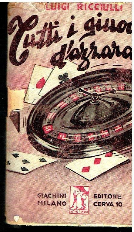 Titolo: TUTTI I GIUOCHI D'AZZARDO Autore: RICCIULLI LUIGI Casa editrice: GIACHINI Anno di pubblicazione: 1950 PP: 255 Dimensioni: Cm 190X 12 Caratteristiche: in brossura editoriale con sovraccoperta illustrata. La sovraccoperta presenta segni d'uso e piccoli strappi - Condizioni: condizioni buone - segni del tempo Pagamenti Prima di effettuare il pagamento accertarsi della presenza in negozio del libro. (al momento dell�acquisto se in orario lavorativo comunicherò nell�immediato la presenza del libro) si accettano: A