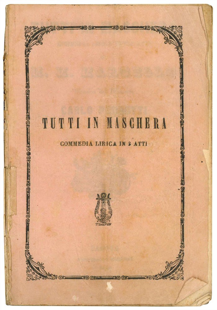 Tutti in maschera. Commedia lirica in tre atti di M. M. Marcello. Musica del maestro Carlo Pedrotti.