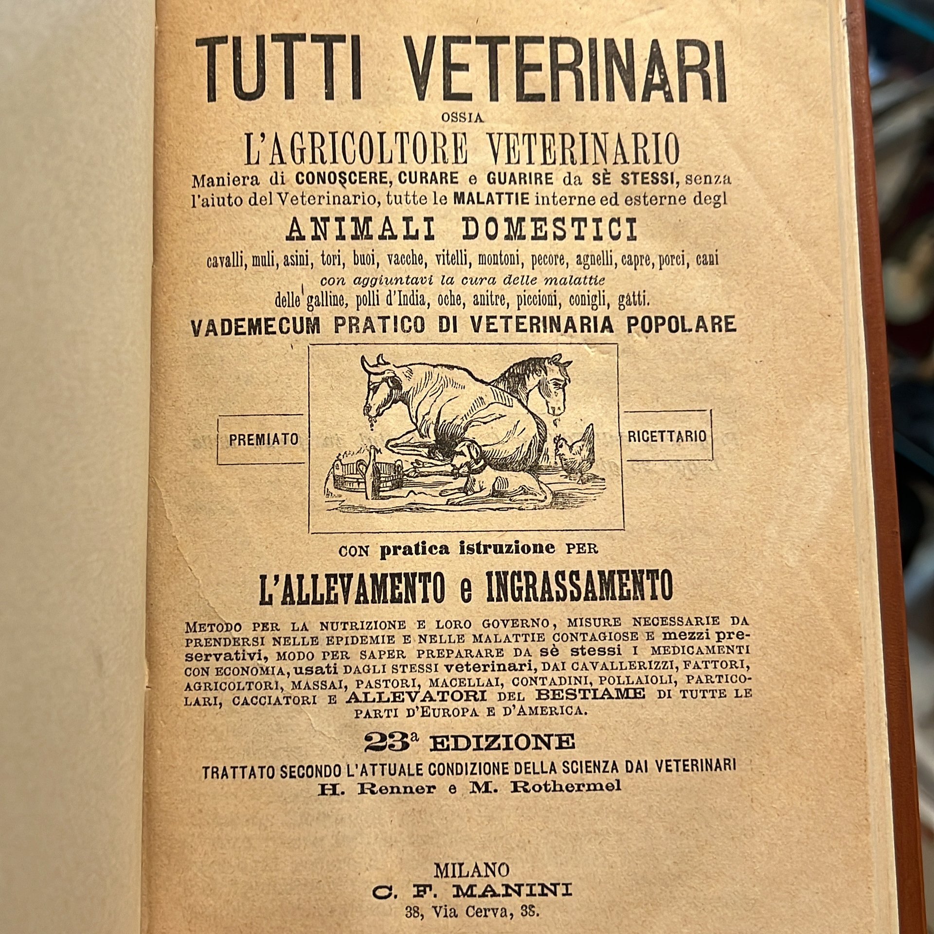 Tutti veterinari ossia l'agricoltore veterinario . Maniera di conoscere, curare e guarire da se stessi, senza l'aiuto del vetrinario, tutte le malattie interne ed esterne degli animali domestici
