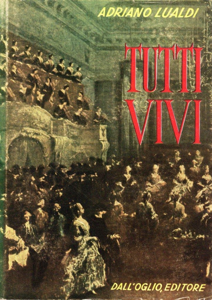 Tutti vivi, prima edizione giugno 1955, pp. 483, formato 14 x 19. <BR>Copertina morbida di color crema con titoli in blu e rosso al piatto anteriore e sul dorso. Sovraccoperta illustrata (Concerto di gala, Guardi) con titoli in giallo e rosso. All'interno presenti alcune tavole fotografiche in b/n. <BR>Ottime condizioni.