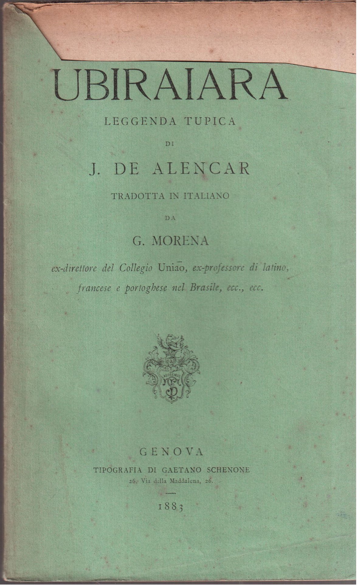 Ubiraiara-Leggenda tupica di J. De Alencar tradotta in italiano da G. Morena