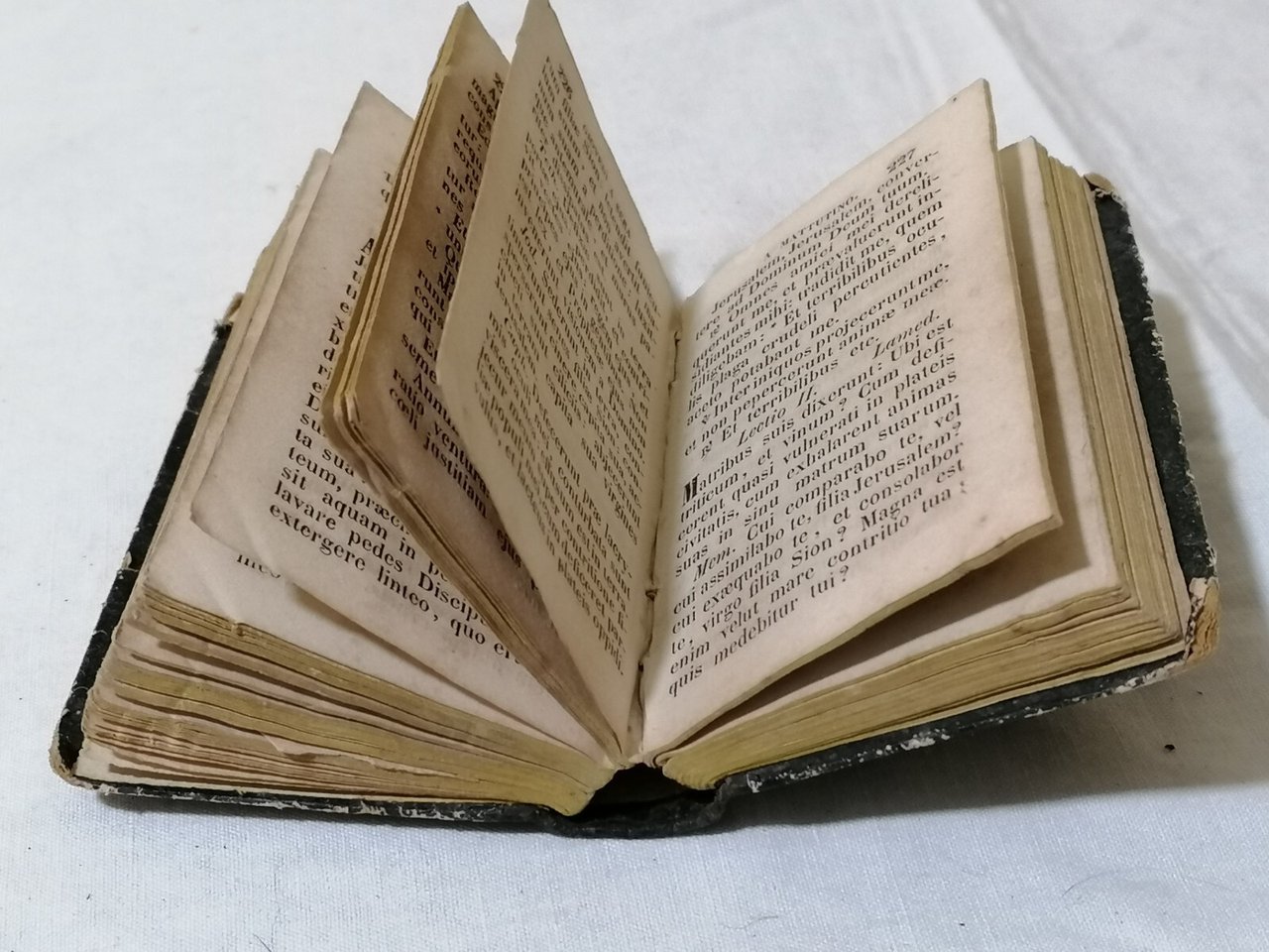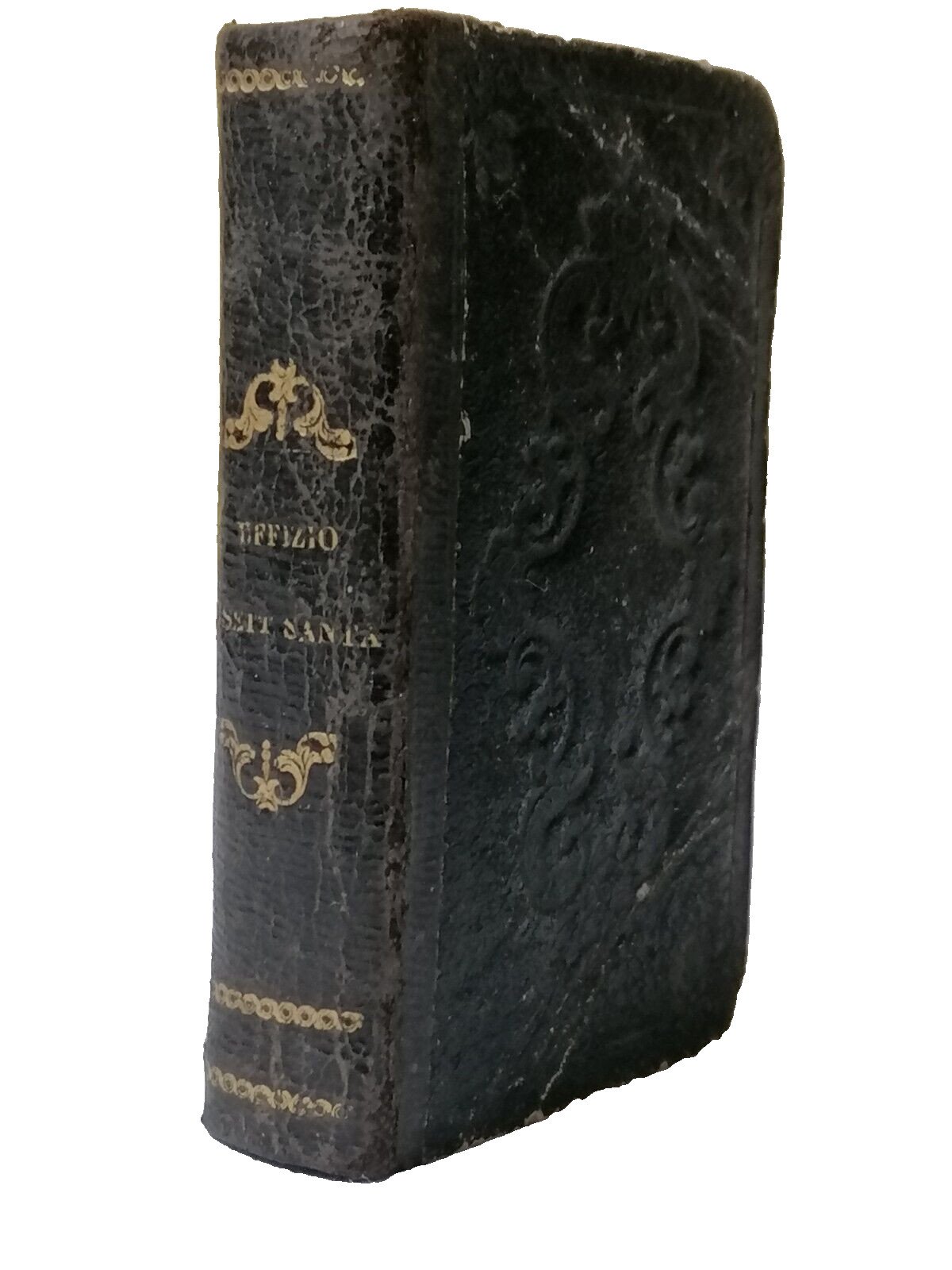 UFFIZIO DELLA SETTIMANA SANTA COLL'AGGIUNTA DELLE DICHIARAZIONI IN LINGUA ITALIANA - 1855 - TIPOGRAFIA E LIBRERIA CANFARI - TORINO. In 16^, dimensioni 10,5 x 6,5 x 2, legatura a mezza pelle, 384 pp. Discrete condizioni compatibilmente con l'età. No pagine mancanti, no strappi o altri difetti macroscopici