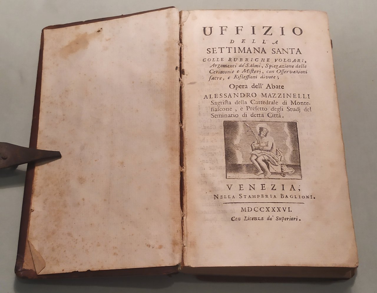 Uffizio della Settimana Santa colle rubriche volgari, argomenti de' salmi, spiegazione delle cerimonie e misteri, con osservazioni sacre e riflessioni divote.