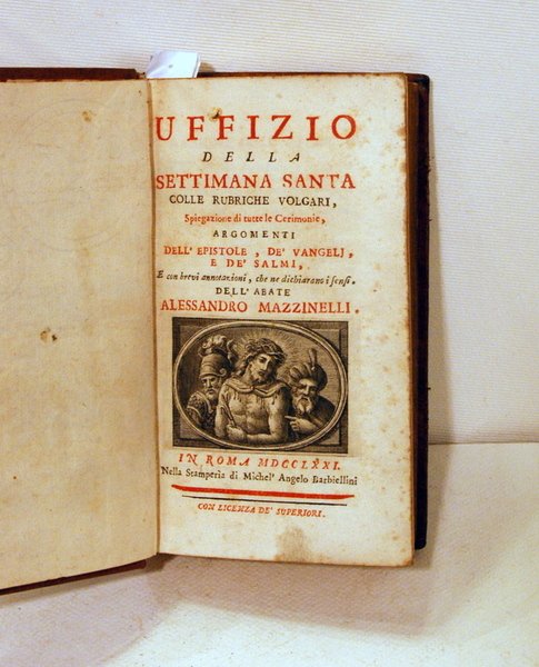 UFFIZIO DELLA SETTIMANA SANTA CON RUBRICHE VOLGARI, SPIEGAZIONE DI TUTTE LE CERIMONIE, ARGOMENTI EPISTOLE, VANGELI E SALMI.CON ANNOTAZIONI DELL'ABATE ALESSANDRO MAZZINELLI