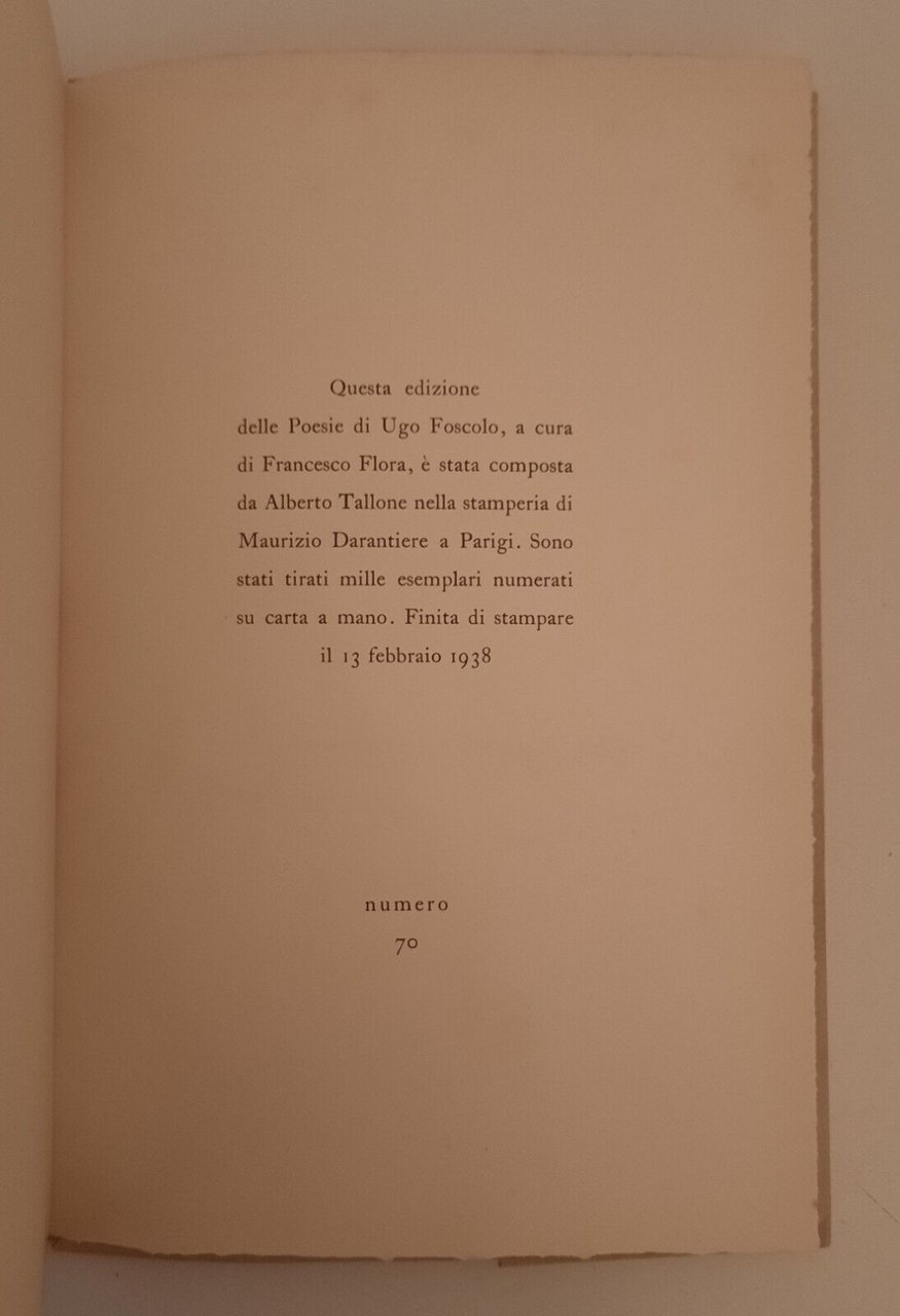UGO FOSCOLO POESIE TALLONE EDITORE 1938