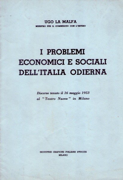 UGO LA MALFA. I problemi economici e sociali dell'Italia odierna. Discorso tenuto il 16 maggio 1953 al "Teatro Nuovo" in Milano.