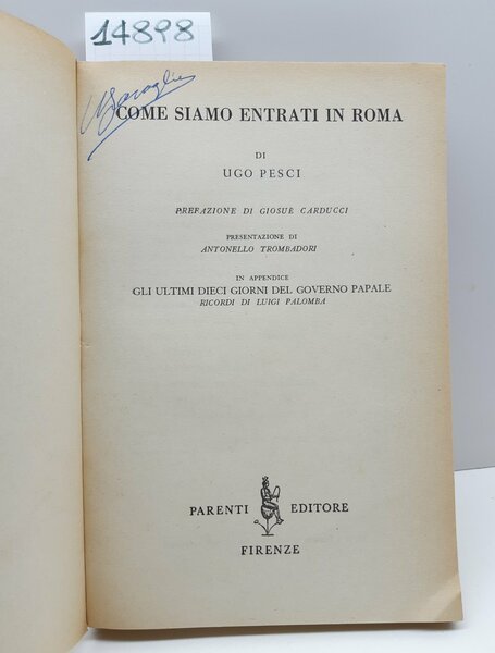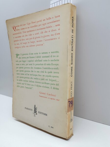 Ugo Pesci Come siamo entrati in Roma prefazione di GiosuË Carducci Parenti 1956