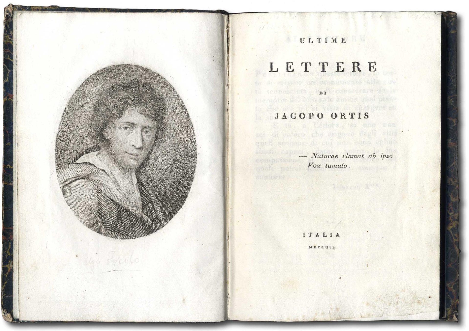 Ultime Lettere di Jacopo Ortis tratte dagli autografi. (Segue il motto:) ''Naturae clamat ab ipso Vox tumulo''.