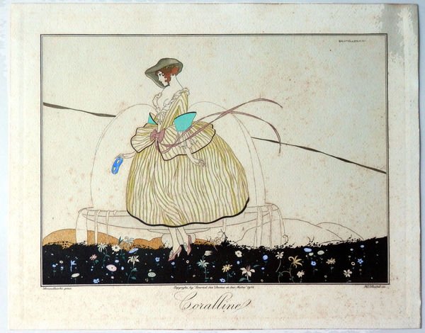 UMBERTO BRUNELLESCHI - "CORALLINE" - Pochoir Art Deco, 1914