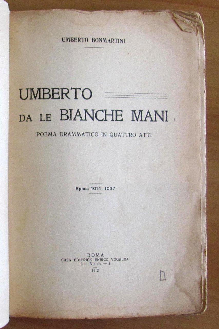 UMBERTO DA LE BIANCHE MANI - Poema drammatico in 4 Atti