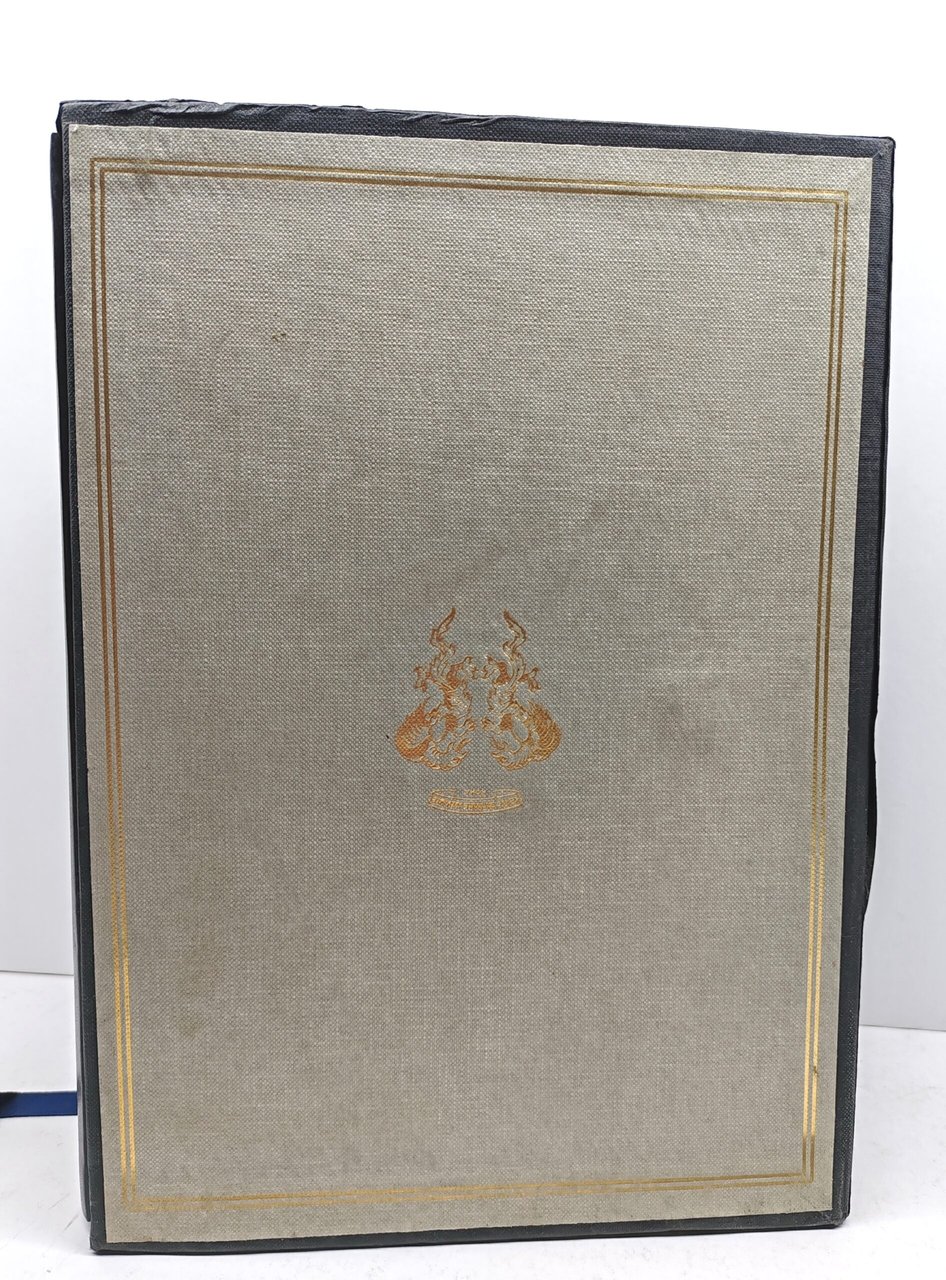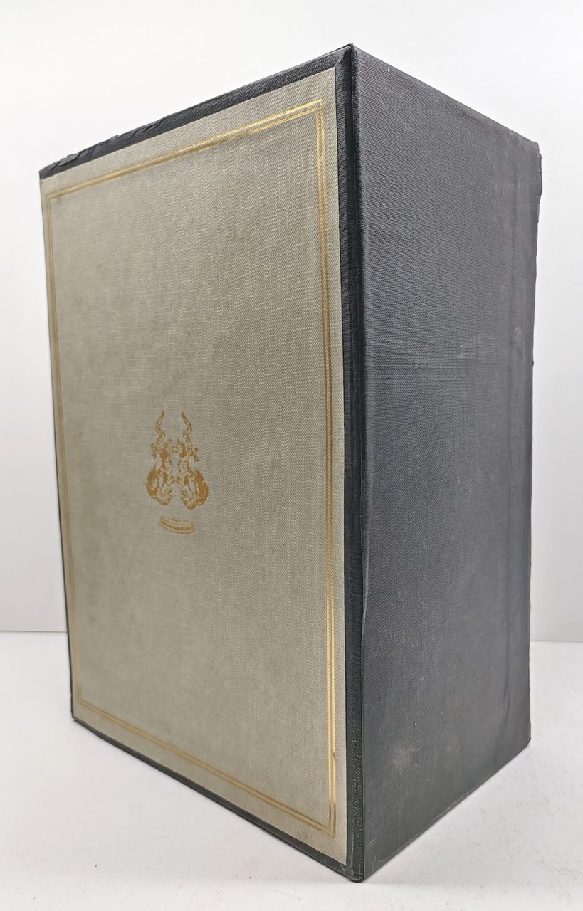 Cofanetto rigido editoriale con alcune sporcizie e macchie, leggermente impolverato, legatura rigida editoriale in pelle, al primo volume fregio in rame ed oro 24 carati dell'artista Nicola Russo da Palestrina, tagli con fioriture, vedere immagini, fogli di guardia con logo dell'editore interno in buono stato, secondo e terzo volume, legatura rigida editoriale in pelle con titolo in oro al piatto anteriore e al dorso, etichetta al margine inferiore del piatto anteriore scolorita, interno in buono stato numero pagine 1889 dimensione cm 29 * 20,8 * 13,5