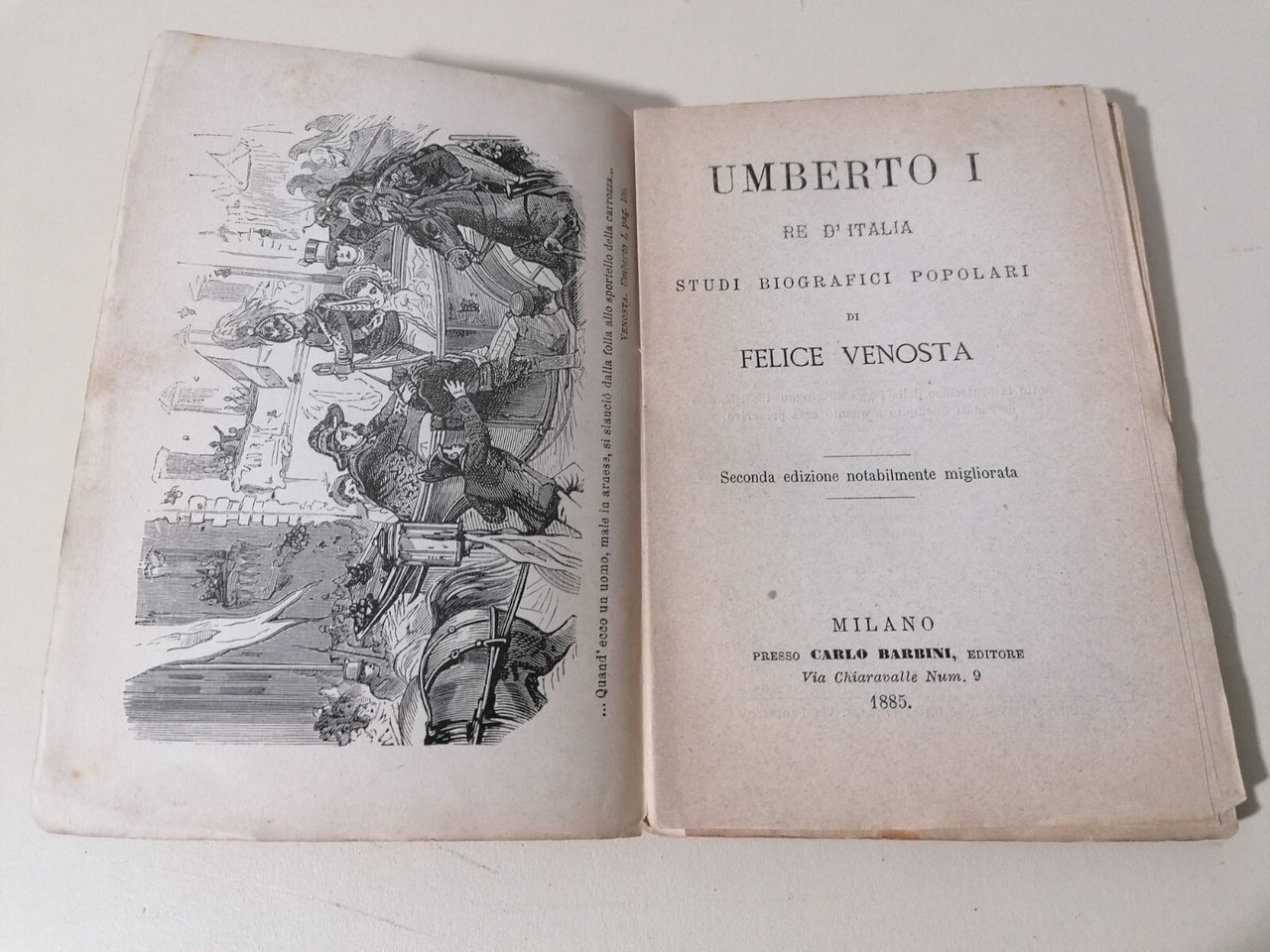 Umberto I Re D'Italia Libro Venosta Studi Biografici Popolari Barbini 1885 Antic