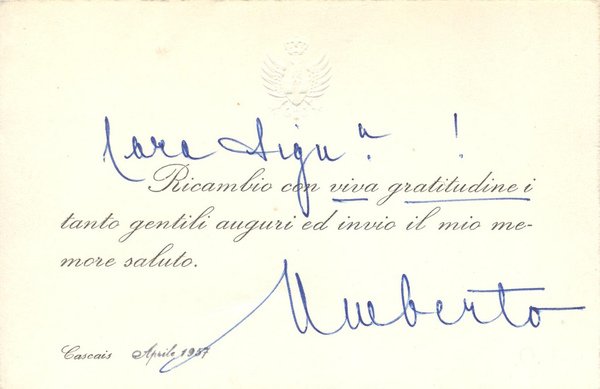 *Umberto II di Savoia. Biglietto di auguri autografato.