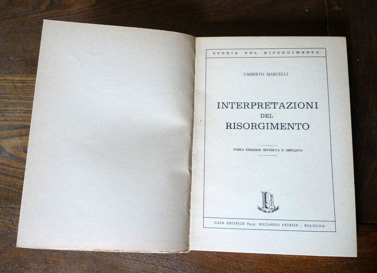 Umberto Marcelli,INTERPRETAZIONI DEL RISORGIMENTO.Pàtron Editore, Bologna 1970,terza edizione riveduta ed ampliata,brossura, 22x15,5 cm., pp.176,STORIA DEL RISORGIMENTO ITALIANO EDELL'UNITÀ D'ITALIA / 5,collana diretta da Umberto Marcelli,peso: g.350