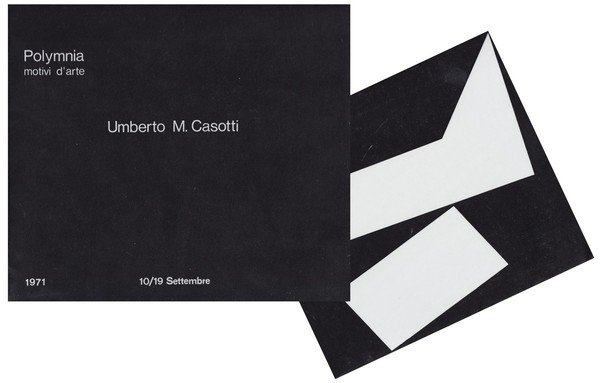 invito di 4 facciate alla mostra di Umberto Maria Casotto tenutasi alla Galleria Polymnia motivi d'arte a Rapallo il 10 e 11 settembre 1971 con all'interno due acetati il primo con un testo e il secondo con una serigrafia originale di Umberto Maria Casotti; ottimo es.