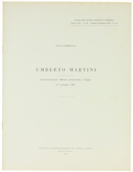 UMBERTO MARTINI. Commemorazione ufficiale pronunciata a Taggia il 9 gennaio 1966