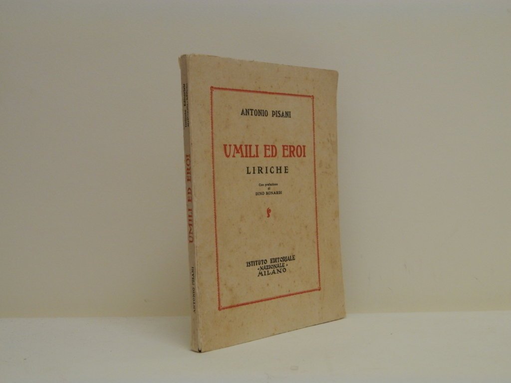 16^, mm 200x150, pp. 96, brossura editoriale con titolo in rosso in cornice al centro del piatto, buona conservazione, diffuse macchioline ai piatti, dorso slegato. Prima edizione, con prefazione di Dino Bonardi.. *** TUTTI I NOSTRI LIBRI SONO VISIBILI PREVIO CONTATTO MAIL O TELEFONO NELLA NUOVA SEDE DI MILANO: LIBRERIA COSMOPOLIS, VIA JOMMELLI, 22. ***