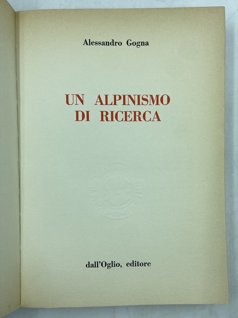 Brossura editoriale illustrata cm 21x15, pp 347 (5), 16 tavole a colori e 16 in nero. Collana Exploits. Discreto stato, lievi segni d’usura sulla copertina. Edizione originale di uno dei primi libri di Gogna che raccoglie racconti, lettere e scritti per lo più inediti, e una lunga appendice di riflessione sull’alpinismo, la sua storia e il suo significato, in cui trova posto un articolo scritto a quattro mani con Gian Piero Motti. Perret, 1977; Angelini, 1325.