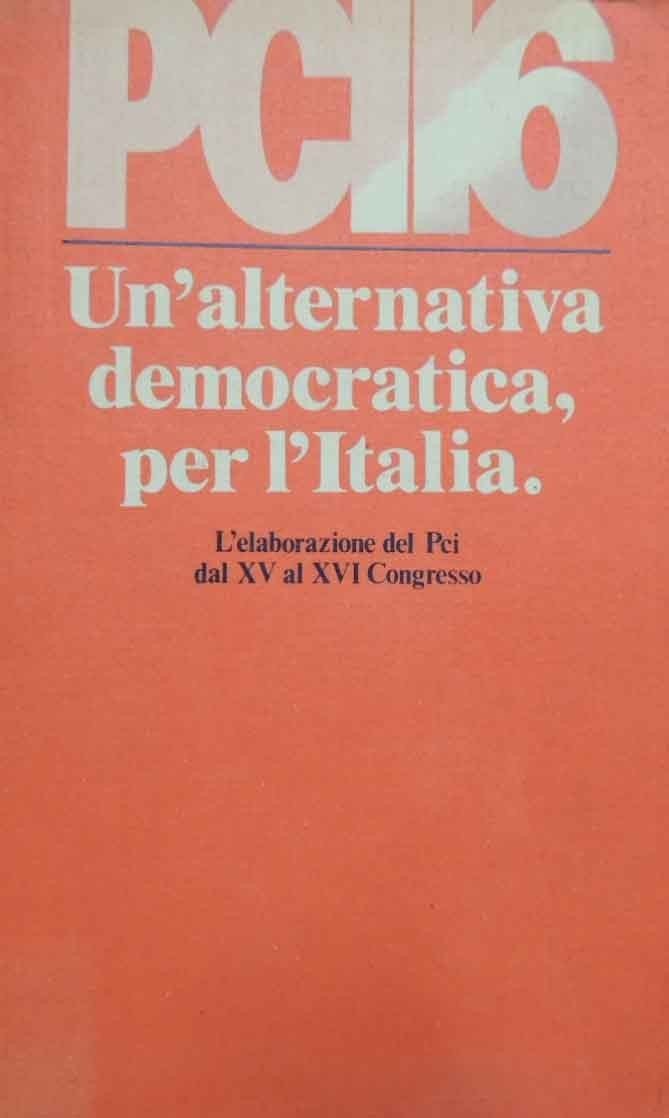 Un’alternativa democratica per l’Italia. L’elaborazione del PCI dal XV al XVI Congresso, a cura della Federazione Provinciale di Bari del Partito Comunista Italiano, s.n., s.l. (ma stampato a Bari, presso la Tipolitografia Mare s.n.c.) 1983, pp. 479, cm 22, br. ed. Indice: Tesi approvate dal XV Congresso Nazionale del PCI – Il documento dle Comitato Centrale per i Congressi Regionali – L’elaborazione internazionale (Il Comitato Centrale sulle questioni internazionali: Relazione di Romano Ledd, Conclusioni di Giancarlo Pajetta, Il testo del Documento per una Carta della Pace – La posizione dei Comunisti italiani sui fatti di Polonia: Documento del 14 dicembre 1981, Risoluzione della Direzione del PCI del 29 dicembre 1981, La relazione di enrico Berlinguer al Comitato centrale gennaio 1982) – Lotta delle idee e ruolo delle istuìituzioni culturali (La relazione di Aldo Tortorella al Comitato Centrale del PCI – L’intervento di Enrico Berlinguer) – Materiali e proposte per un programma di politica economico-sociale e di governo dell’economia – Enrico Berlinguer, rinnovamento della politica e rinnovamento del PCI – VIII Conferenza nazionale degli operai, tecnici e impiegati comunisti (Il documento – La relazione introduttiva di Antonio Montessoro – Le conclusioni di Enrico Berlinguer) – Conferenza meridionale del PCI (La relazione introduttiva di Achille Occhetto) – Il documento base del dibattito per il XVI Congresso del PCI. Minima ingiallitura della carta, per il resto ben conservato. Raro.