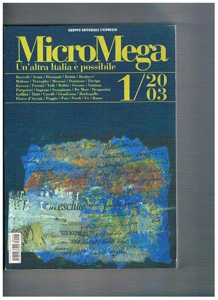 Un'altra Italia è possibile. N° 1 del 2003 del periodico Micromega. Scritti di: Borrelli, Settis, Maltese, Travaglio, Messori, Davigo, Ingroia, Scarpinato, vattimo, Caselli, Barbagallo, Foa, Pardi, ecc.