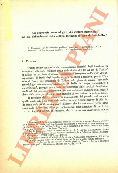 Torino, 1979, 8vo stralcio con copertina posticcia muta, pp. 504/546 con cartine, figure e tabelle. - ! ATTENZIONE !: Con il termine estratto (o stralcio) intendiamo riferirci ad un fascicolo contenente un articolo, completo in se, sia che esso sia stato stampato a parte utilizzando la stessa composizione sia che provenga direttamente da una rivista. Le pagine sono indicate come "da/a", ad esempio: 229/231 significa che il testo è composto da tre pagine. Quando la rivista di provenienza non viene indicata é perché ci è sconosciuta. - ! ATTENTION !: : NOT A BOOK : “extract” or “excerpt” means simply a few pages, original nonetheless, printed in a magazine. Pages are indicated as in "from” “to", for example: 229/231 means the text comprises three pages (229, 230 and 231). If the magazine that contained the pages is not mentioned, it is because it is unknown to us.