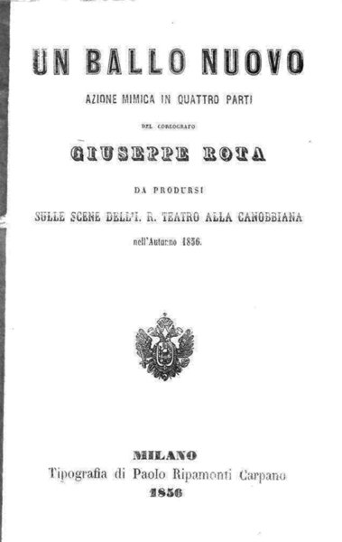 Azione mimica in quattro parti del coreografo Giuseppe Rota. Teatro alla Canobbiana di Milano, Autunno 1856. Elenco dei personaggi con i nomi degli interpreti.
