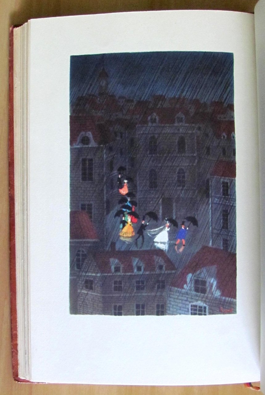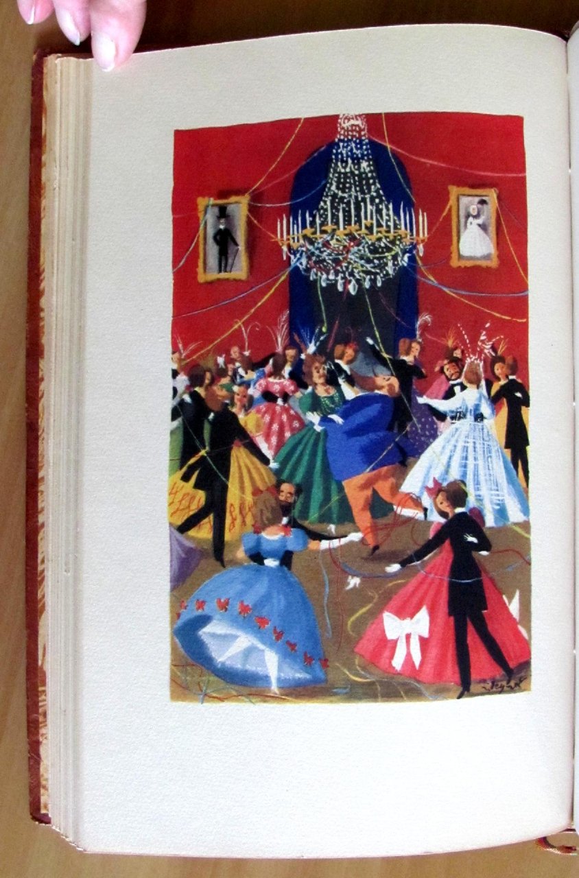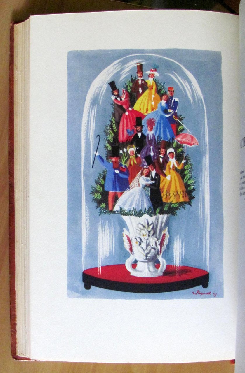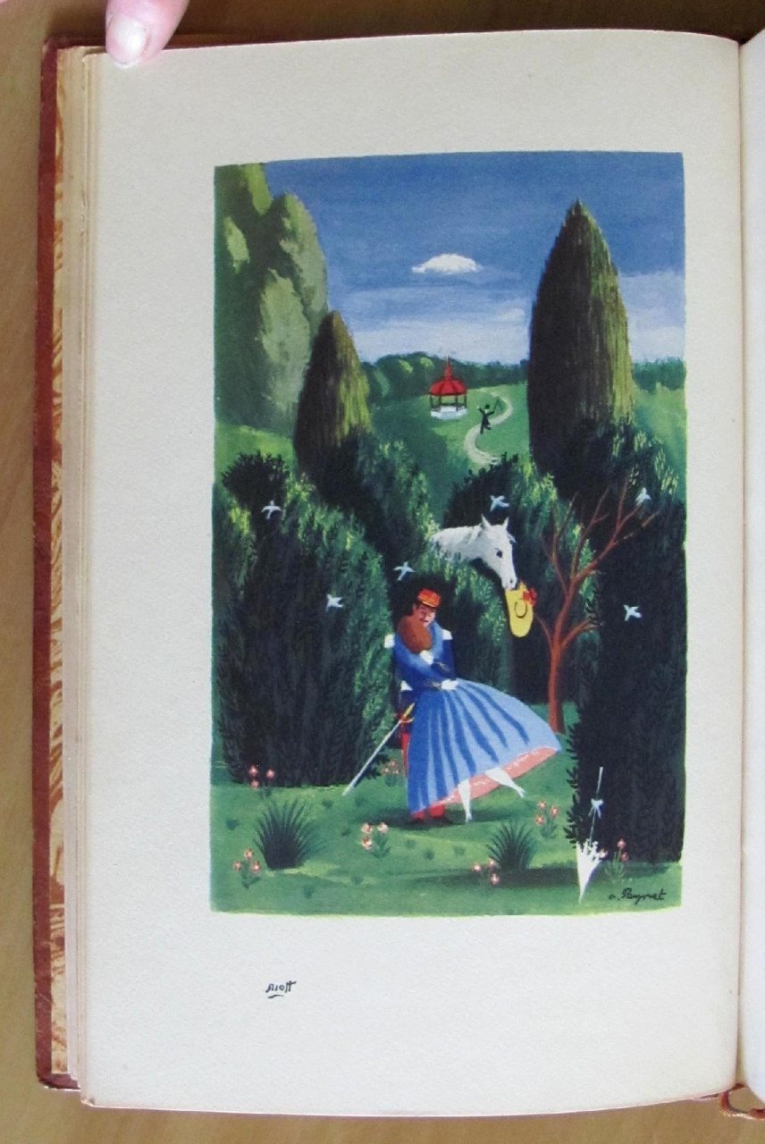 Molte illustrazioni a colori n.t. e 5 tavole a colori f.t. di R. Peynet. Editions Du Bélier - Paris, 1943. Tiratura Limitata a 4500 esemplari numerati, nostro N° 1238. Belle rilegatura coeva in mezza pelle con nervi e titoli in oro al dorso e copertina in brossura originale conservata all'interno con laccio. 17x25,5; pp.145. Raro e in Stato di Nuovo. , Ottimo (Fine)