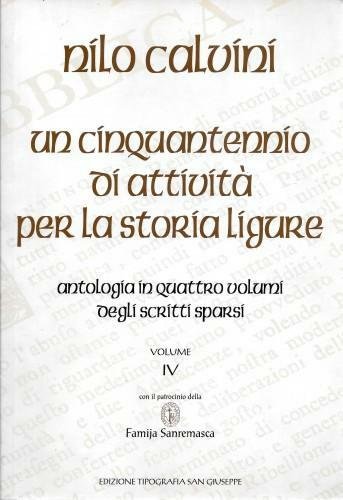 in 8°, pp. 299, bross. edit. Col patrocinio della Famija Sanremasca. Scritti sui più vari argomenti: La strada del sale Oneglia-Ormea, Aranci sanremesi nel Medio Evo, Sanremaschi schiavi dei Turchi, Sanremo vicecapitale della Repubblica di Genova, Conseguenze dell'insurrezione del 1753, etc. In ottimo stato. 048-40