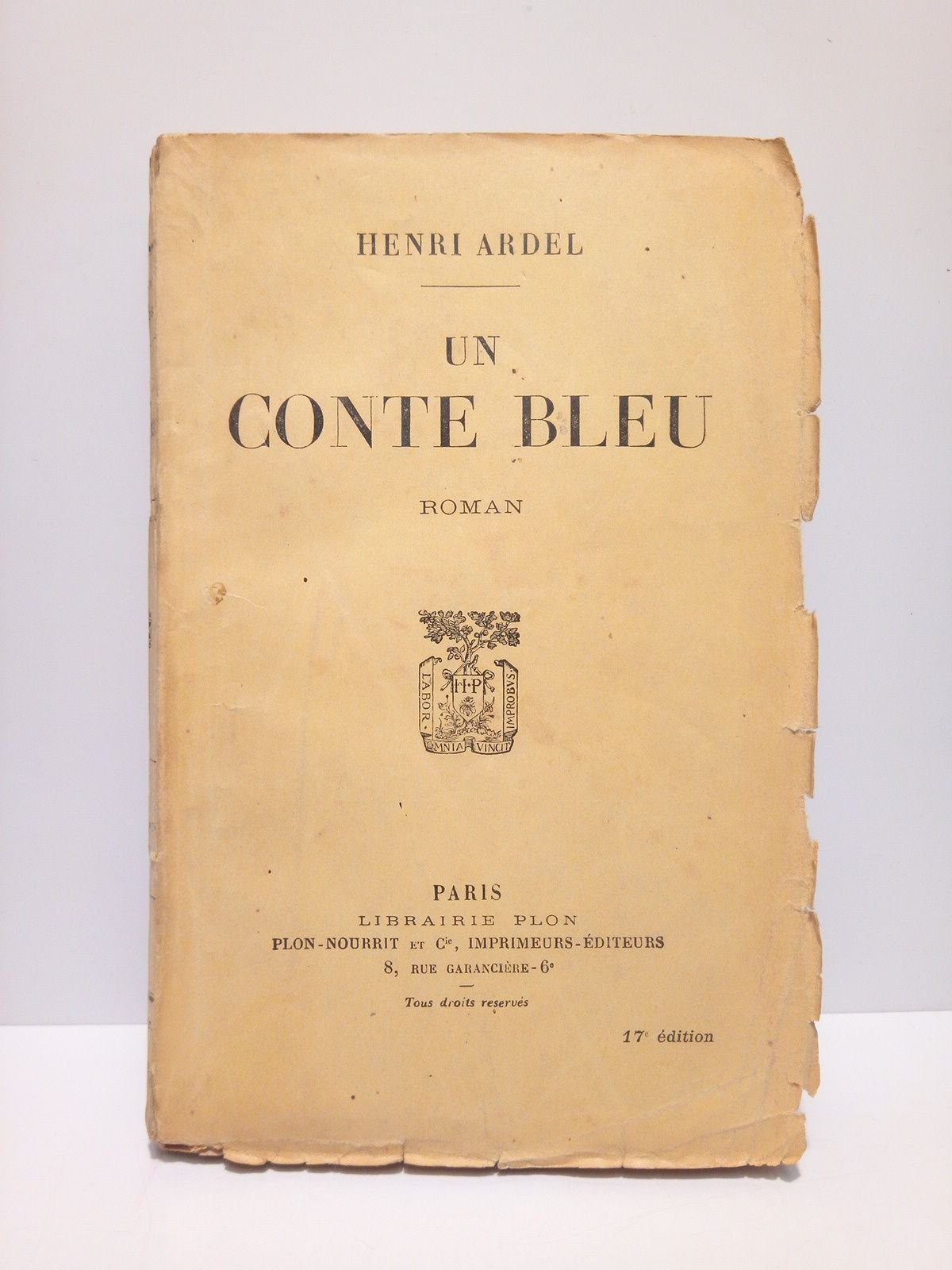 Paris: Librairie Plon, 1922.- 233 p.; 8º (18,8 x 12,3 cm); Sin tonsurar, con todas sus barbas; Texto en francés; Rústica Ed.* Los bordes de las cubiertas ligeramente fatigados, con una pequeña falta en el margen inferior de la lomera. Por lo demás en buen estado. LITERATURA Y ESTUDIOS LITERARIOS EXTRANJEROS DE LOS SIGLOS XVI-XXI