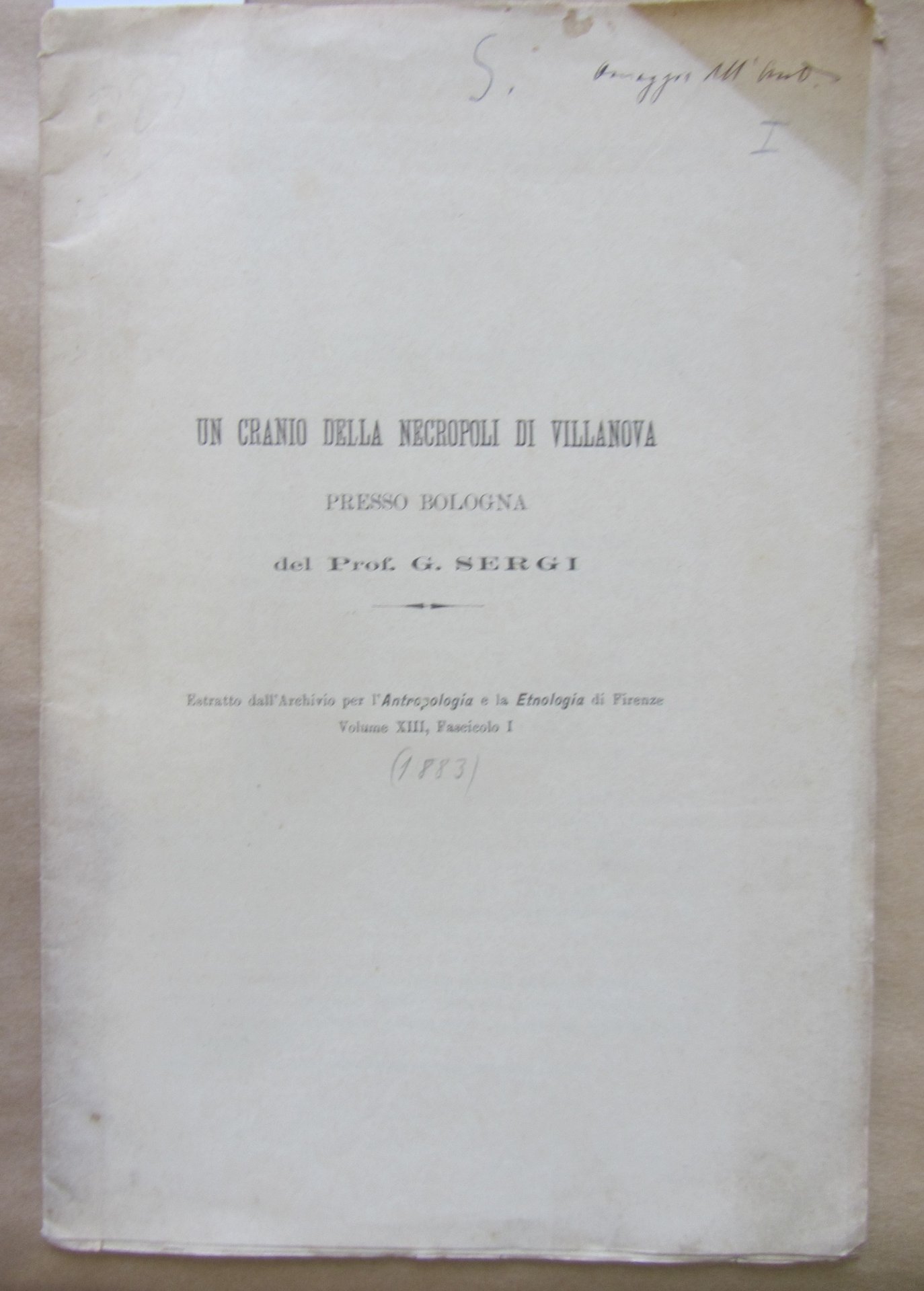 UN CRANIO DELLA NECROPOLI DI VILLANOVA, PRESSO BOLOGNA.