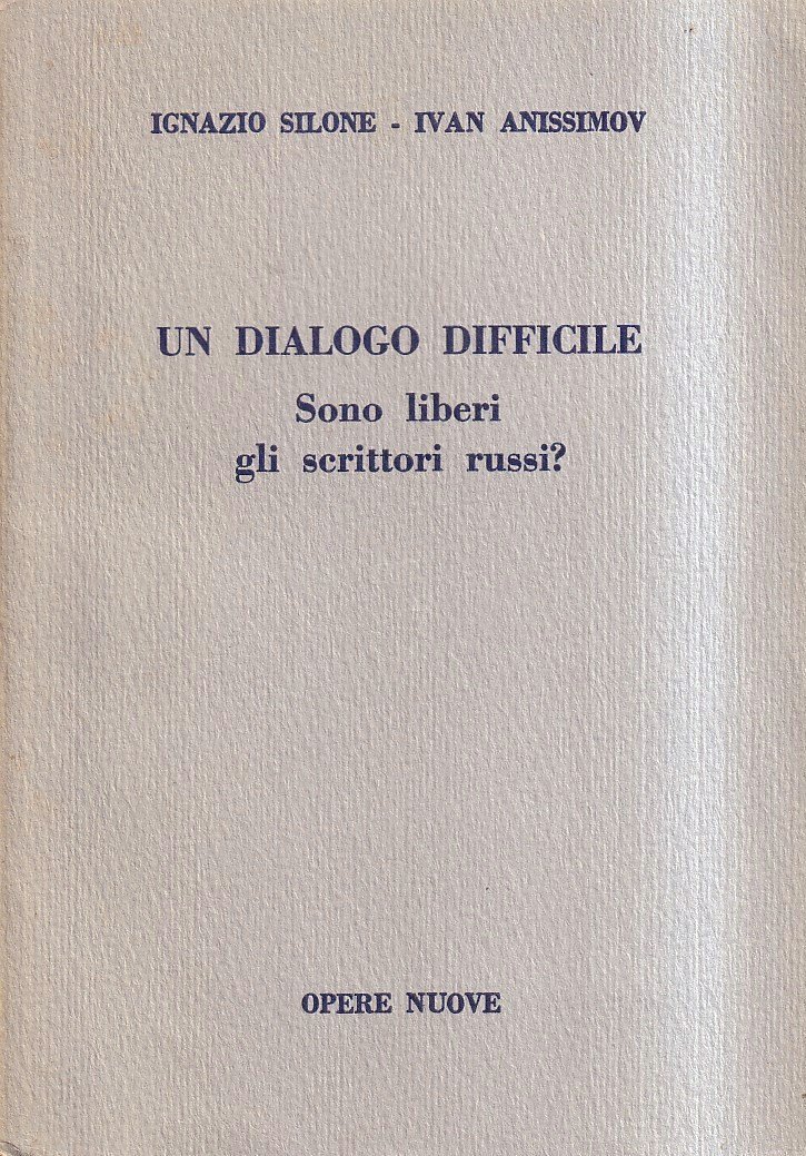 Prima edizione. Collana "Saggi e inchieste" diretta da Francesco Compagna, 1 - Brossura editoriale di 81 pagine ancora intonse (a fogli chiusi). Allegato un comunicato dattiloscritto per presentare il volume, "con preghiera di pubblicazione". Dorso lievemente brunito, peraltro copia eccellente -- Il volume documenta lo scambio epistolare fra Silone e l'accademico sovietico Ivan Anissimov sul cosiddetto "dialogo" fra capitalismo e socialismo sovietico.