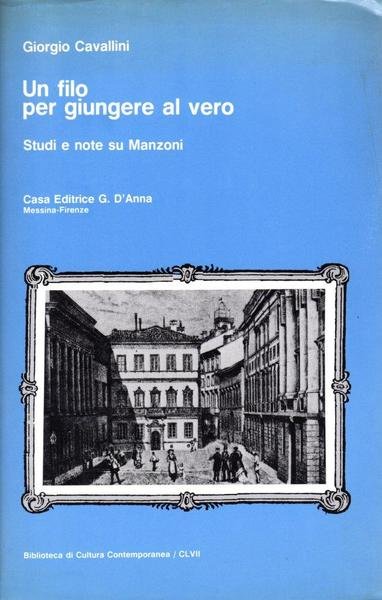 Un filo per giungere al vero. Studi e note su Manzoni, edizione febbraio 1993, pp. 296, formato 14,5 x 23. <BR>Copertina morbida illustrata con titoli in bianco al piatto anteriore e in nero sul dorso. Volume intonso.In prima pagina presente dedica dell'autore. <BR>Condizioni molto buone.