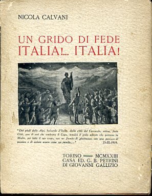 In-8°, pp. (8), 137, (3), brossura editoriale con illustrazione in b.n. applicata al piatto. Una firma del tempo. Bell'esemplare. Prima edizione. Studio sull'Italia nella Grande Guerra e dopo la presa al potere del fascismo. L'autore era stato tenente nel 23° Artiglieria da campagna; ferito nella Grande Guerra, fu insignito della medaglia al valor militare.